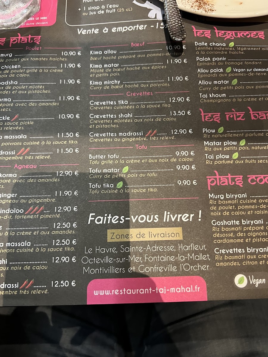 Introducing the delectable menu of Le Taj Mahal, a charming Indian restaurant nestled in the heart of Le Havre. From the moment you step in, the warm ambiance and friendly service promise a delightful experience. Guests rave about the attentive staff and the inviting atmosphere, making each visit memorable.